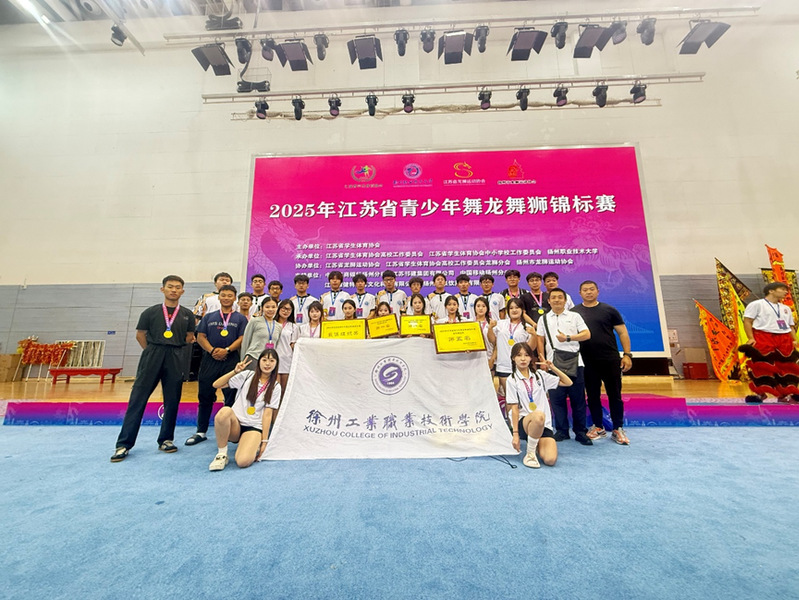 近日,江苏省青少年舞龙舞狮锦标赛在扬州职业技术大学盛大举行。我校龙狮队在李文明、张雨馨、贺维奇三位教练指导下,团结协作,勇争一流,斩获两枚金牌、团体总分第五名,并被组委会评为最佳组织奖。