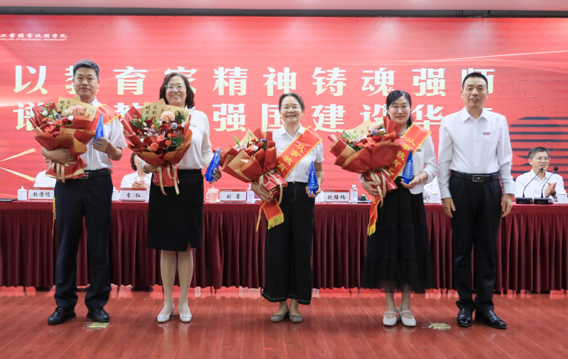 刘莹向全体教职工致以节日的问候,向受到表彰的老师们表示热烈祝贺。她总结了我校事业高质量发展的主要成绩,充分肯定了广大教职工在学校建设发展中作出的突出贡献。刘莹寄语新教师:要以育人智慧与躬耕态度投身教育;要践行五个一”——关爱每个学生、上好每堂课、管好一个班级、树好一面旗帜、挚爱一生事业;要铭记三尺讲台、四季躬耕,育人一程、受用一生”16字箴言,砥砺前行。结合学校实际工作,她对全体教职工提出三点希望:一是牢记育人初心,以“四有”好老师标准为指引,用心当好学生成长的引路人,成为受认可的“大先生”;二是主动深入企业一线,提升教学科研能力,产出标志性成果,将企业案例融入课堂,争做“双师型”教师,成为产教融合中坚力量;三是发扬主人翁精神,积极对接徐工集团需求,参与技术攻关,转化新工艺为教学资源,为学校“双高计划”建设贡献力量,携手打造产教融合新标杆,共谱学校发展新篇章。