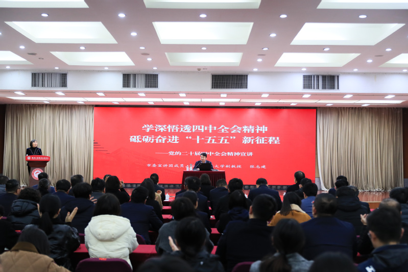 12月2日下午,我校在图书馆报告厅举行学习贯彻党的二十届四中全会精神市委宣讲团报告会。徐州市委宣讲团成员、江苏师范大学马克思主义学院张志建副教授来校作宣讲报告。全体校领导、中层干部、党支部书记、思政课教师、辅导员及学生代表参加会议,会议由党委副书记李红主持。