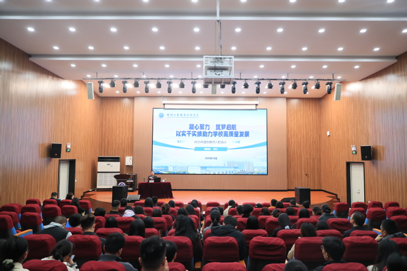 校长鲍桂楠以《凝心聚力筑梦启航以实干实绩助力学校高质量发展》为题,回溯学校六十载奋进历程,介绍“双高计划”、产教融合等成就,勾勒“十五五”职业技术大学建设蓝图,引导新教师对接产业需求、锚定学校目标规划职业路径,以实干担当书写教育答卷。