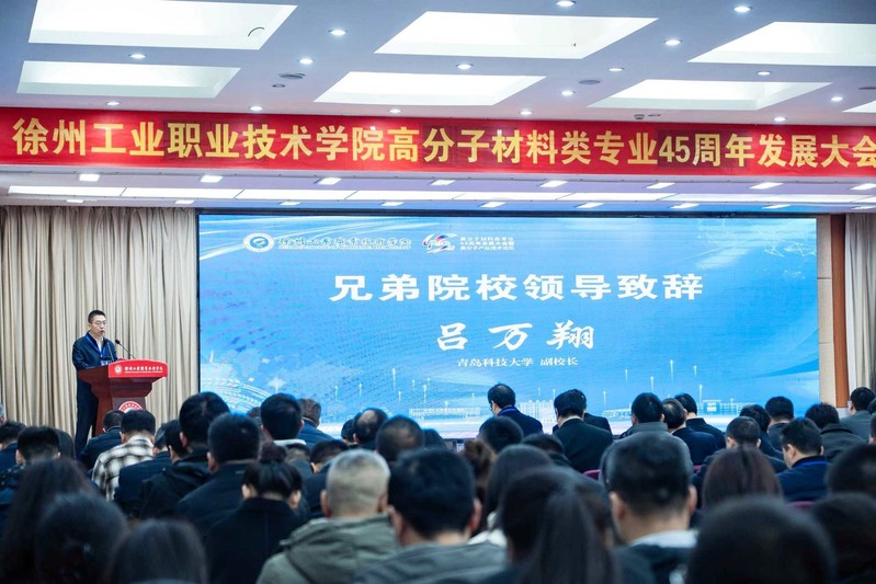 西安交通大学校长、中国工程院院士张立群通过视频致辞,对学校高分子专业45年的发展给予了高度评价,指出徐工职院始终深耕高分子材料领域,坚守着扎根行业、服务行业的办学理念和初心,被业界誉为橡胶行业技术技能人才的“黄埔军校”。他从学科前沿视角建言:“职业教育应聚焦高分子材料‘绿色化、智能化、高端化’转型需求,强化跨学科技能培养”,传递了对高分子产业与职业教育融合发展的殷切期许。青岛科技大学副校长吕万翔回顾了两校四十五年互助共赢的深厚情谊,从专业奠基到产教共同体共建,见证了院校协同育人的丰硕成果。